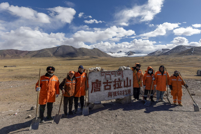 “天下第一道班”部分养路工人在唐古拉山口合影(12月1日摄)。新华社记者 姜帆 摄他们是世界上海拔最高的公路养护道班,成立于1954年青藏公路通车之时,当时被称为“109道班”,1990年12月被原交通部命名为“天下第一道班”,2023年更名为青藏公路事业发展和应急保障中心安多养护段109养护保通点。