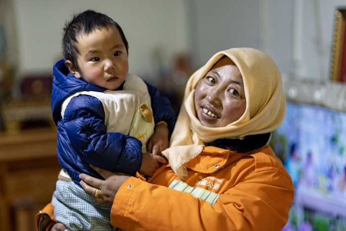 养路工人益西曲珍(右)和一岁多的儿子扎西罗布在“天下第一道班”的职工宿舍中(12月1日摄)。新华社记者 姜帆 摄走出办公点,五十米开外是“司机之家”,过往司机可在这里歇脚。屋内,一边摆放着几张沙发,一边是小超市,提供方便面、饼干、纸巾等物品。