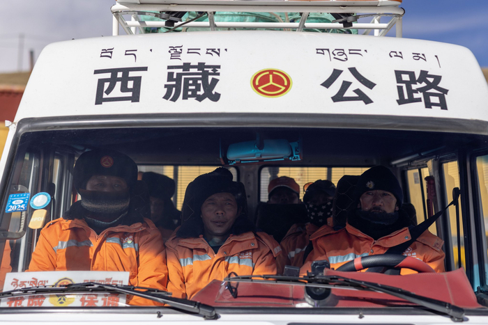 “天下第一道班”的养路工人们乘车去养护道路(12月1日摄)。新华社记者 姜帆 摄地嘎是“路二代”,妻子也是一名养路工人,5岁的儿子就跟在他们身边。地嘎的宿舍位于职工宿舍的最边上,两间房,外加一层阳光棚。屋里有铁灶、床等生活用品,阳光棚的角落里散落着儿子的玩具。