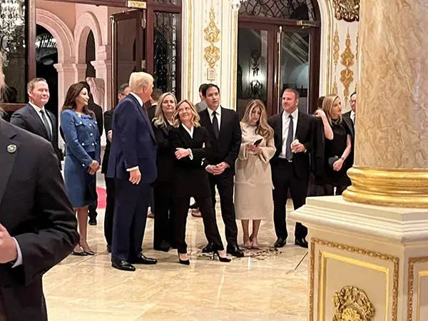 报道称,梅洛尼和特朗普一同在海湖庄园观看了一部纪录片,该片详细介绍了一些美国保守派律师在美国司法体系中面临的挑战。在场的还包括特朗普提名的国务卿马尔科·卢比奥、总统国家安全事务助理迈克·沃尔茨、财政部长斯科特·贝森特等人士。