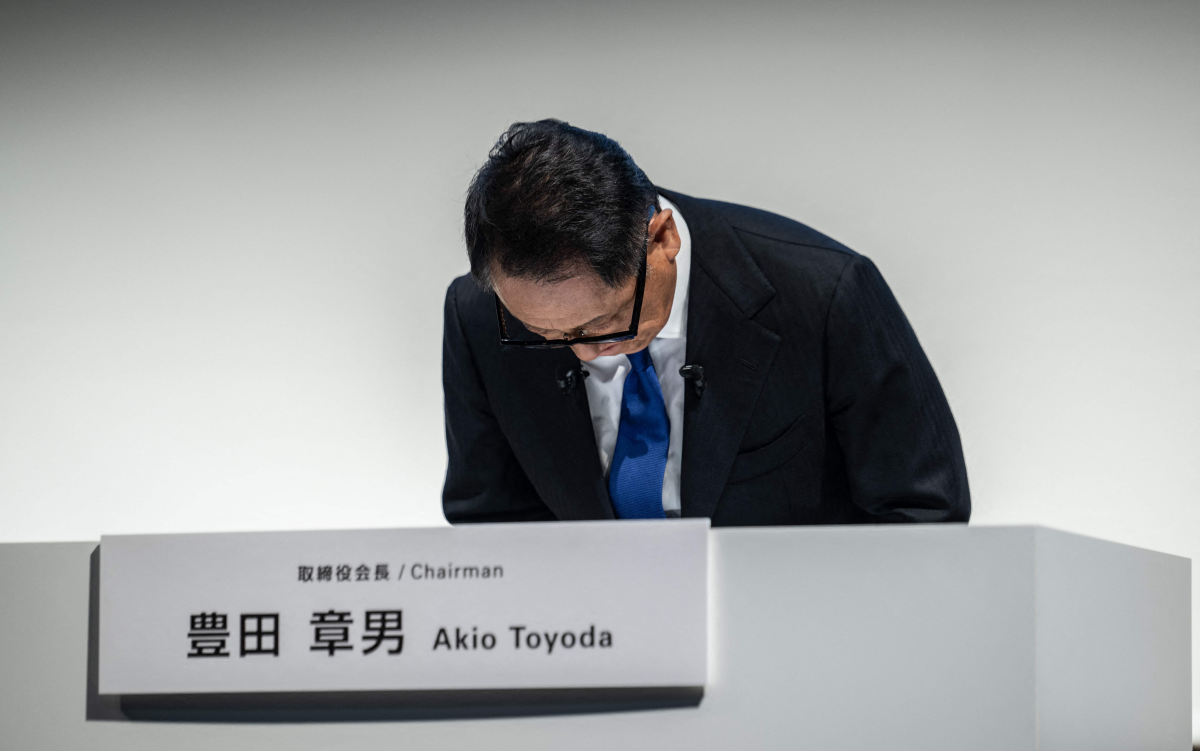 6月丰田汽车会长丰田章男再度就测试造假在记者会上鞠躬致歉 视觉中国