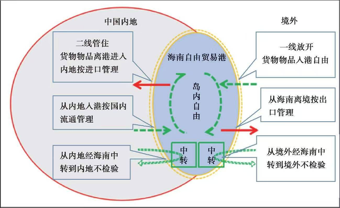 “一线” 指海南与境外间,实施高水平贸易投资自由化便利化,多数境外商品免关税等。“二线” 指海南与内地间,对进出商品、人员等精准监管,防范大量境外商品无序冲击内地市场。岛内各类要素可相对自由流动。