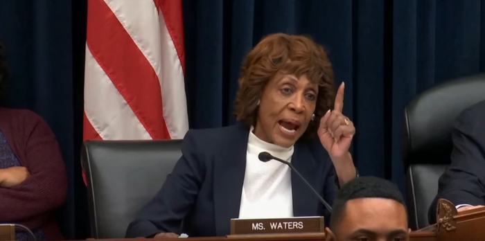这可把沃特斯气得够呛,她转头对共和党籍的委员会主席希尔(French Hill)说,“你能让他闭嘴吗?”