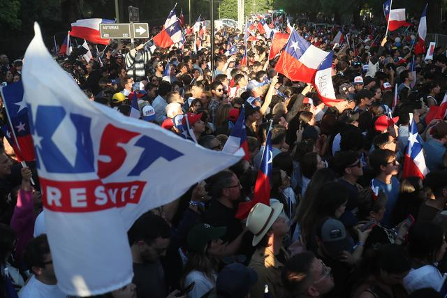 12月14日,在智利首都圣地亚哥街头,智利共和党总统候选人何塞·安东尼奥·卡斯特的支持者庆祝卡斯特胜选。新华社发