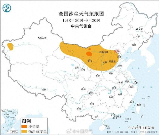 中央气象台介绍,随着冷空气东移,9日大风沙尘的区域也将扩大,西北地区东部、内蒙古、华北等地的部分地区将有沙尘天气。此次沙尘过程出现时间较早,近几年也有1月出现过沙尘天气(2021年1月10-16日、2023年1月12-13日)。提醒受影响区域的公众要注意做好防范措施,外出要注意佩戴口罩等。