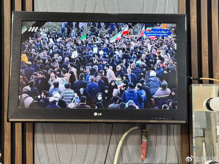 伊朗电视新闻报道的爱国游行。 受访者供图