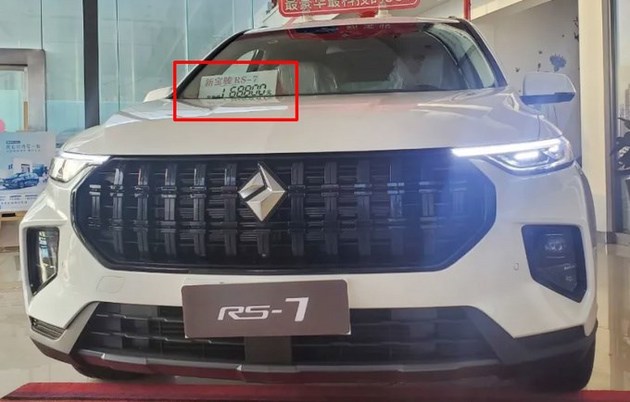 易车讯 今日,我们从相关渠道获悉,上汽通用五菱新宝骏RS-7(配置|询价)的经销商展车图已经曝光,该车已经到店,最快2021年上半年上市,从展车价格可以看出,新宝骏RS-7的疑似价格为16.88万元,该车型预计为顶配版本,此前新宝骏RS-7实车已经于去年6月的重庆车展亮相,该车采用最新家族式设计语言,将提供6座/7座版本供选择,动力方面将搭载1.5T发动机。