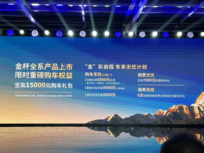 在发布会上,金杯汽车发布全新品牌标识以及全球焕新战略。红标为传统能源车型,银标为新能源序列。