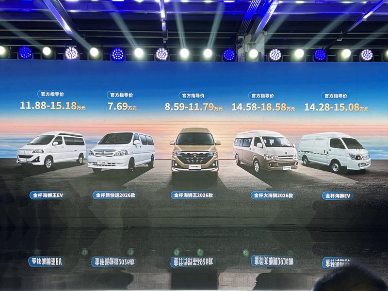 易车讯 10月28日,金杯汽车全系产品迎来全新上市,其中金杯海狮王(配置|询价)2026款售价8.59-11.79万元,金杯新快运2026款售价7.69万元,金杯大海狮2026款售价14.58-18.58万元,金杯海狮(配置|询价)EV售价14.28-15.08万元,金杯海狮王EV(配置|询价)售价11.88-15.18万元。
