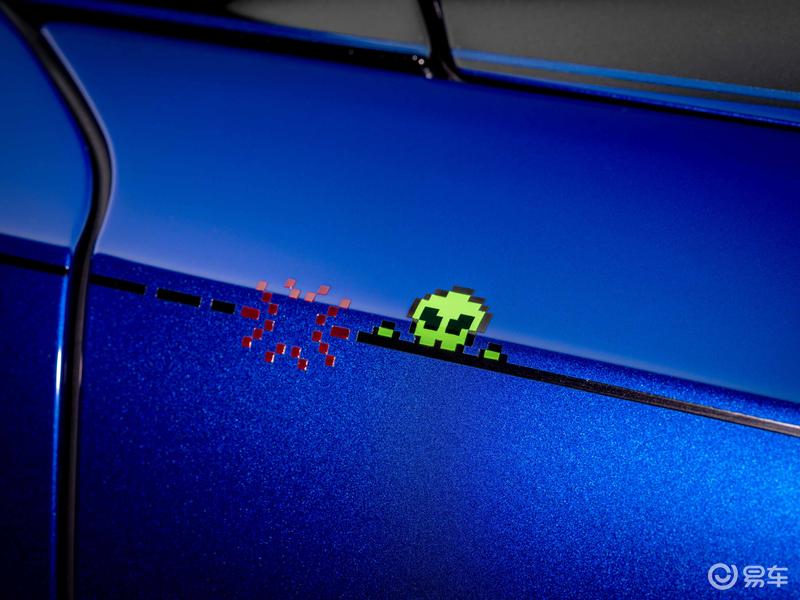 座椅引入Bespoke高级定制刺绣设计,前排绣有“Player 1”和“Player 2”,后排为“Player 3”和“Player 4”,同样以8位像素风格的字体呈现。缝线色彩灵感源自复古街机显示器上闪烁的电光色调,与此形成对比的是每个头枕处的纯色“顽皮外星人”刺绣。与腰线纹样一样,该刺绣同样由89个独立“像素”组成,营造出具有丰富触感的图形。