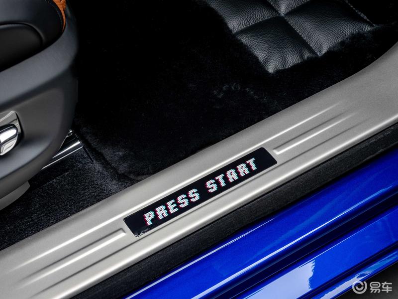 当客户打开车门时,Bespoke发光迎宾踏板跃入眼前。踏板上雕刻着“PRESS START(开始游戏)”“LOADING…(加载中……)”“LEVEL UP(等级提升)”,以及“ COIN(请投币)”经典街机游戏提示语,并采用与座椅刺绣相同的8位像素字体。