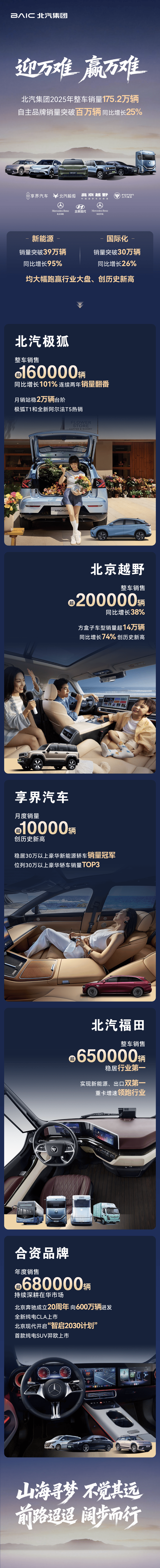 北汽福田整车销售超650000辆,稳居行业第一。实现新能源、出口双第一。合资品牌方面,年度销售超680000辆,持续深耕在华市场。北京现代开启“智启2030计划”。