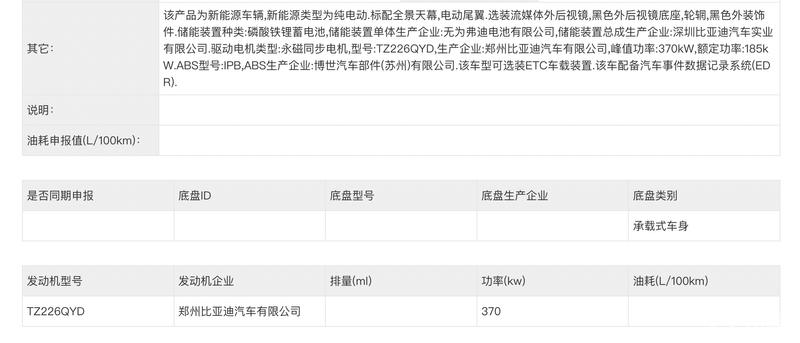 申报的三电机版车型三电机峰值功率为230千瓦/310千瓦/310千瓦,较现款有着较大幅度的提升,最高时速则可达270km/h。值得一提的是,新车本次还申报了一款单电机车型,电机最大功率370千瓦。