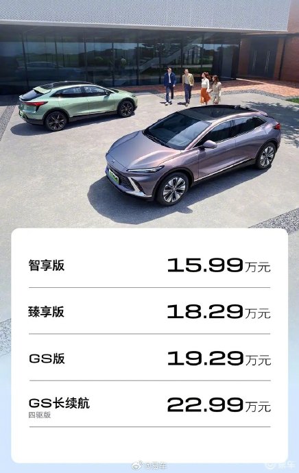 新车基于奥特能智电平台打造,标准版车型最大功率180kW,最大扭矩330N·m,CLTC工况下续航里程达530km。GS长续航四驱版车型最大功率211kW,最大扭矩465N·m,CLTC下工况续航里程达到620km。