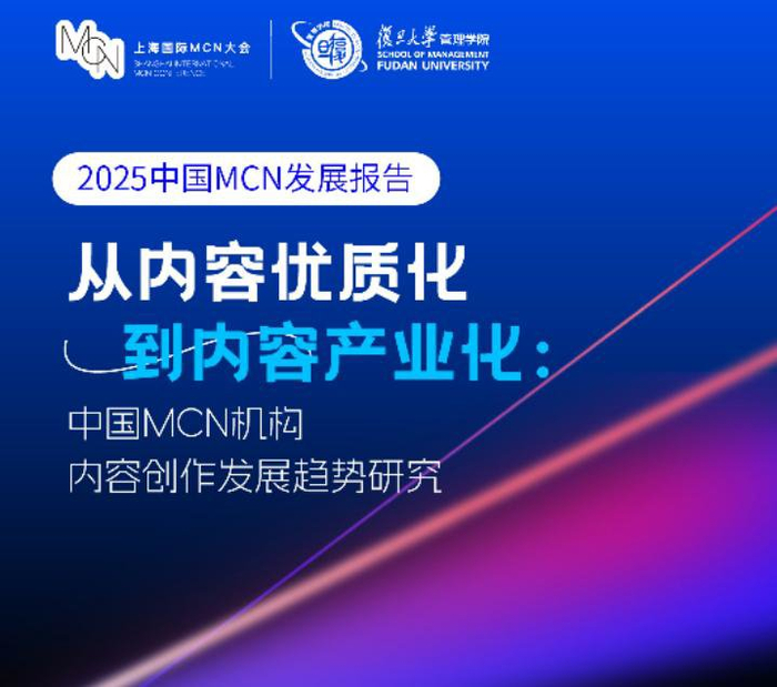 《中国MCN产业发展报告(2025)》由上海国际MCN大会委托复旦大学管理学院撰写。报告从行业现状、政策支持、消费者需求、平台策略、MCN发展路径及未来建议六个维度,构建了一个理解MCN内容创作动态的理论与实践框架。