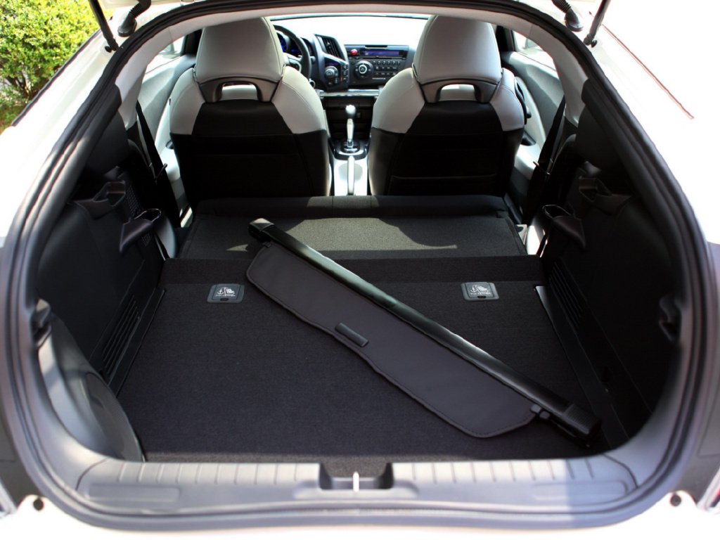 虽然CR-Z的后备箱开口很大,但由于车尾保险杠位置较高,直接导致该车的后备箱开口也很高,对于拿取大件行李来说不太方便。相比之下,后备箱的内部空间也还算充裕,此外既然后排座椅没法正常坐人,倒不如放倒用于扩充后备箱空间。经过这样的空间调整,CR-Z的后备箱实用性进一步提高,放入6个登机箱应该没问题。