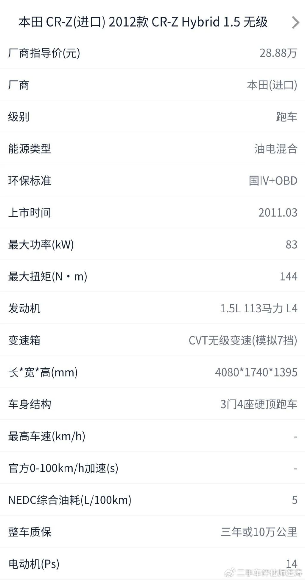 提到混合动力车型,大家总会与环保、低碳、省油这些字眼联系在一起,与运动、操控这些基本不搭界。但本田似乎就想改变人们对传统混合动力车型的固有概念,十来年前曾推出打着“全球首款混合动力轿跑车”口号的本田CR-Z,借着粉丝淘车的机会,我们一起了解下它。(本人无偿提供一切汽车问题的咨询与帮助,淘车、检测、拜师学艺欢迎关注留言,或搜索公众号:优车猎手)