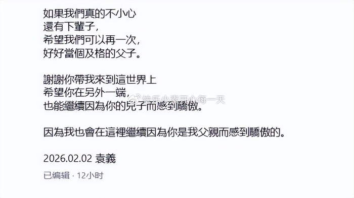袁义发文“希望下辈子我们可以做个及格的父子”