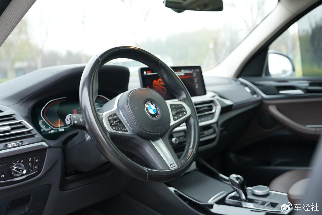 坐进车内,石榴红与檀木黑组合的温莎打孔真皮座椅、月光镀铬饰条和暗影灰白梣木饰板,进一步强化了奢华氛围。相比之下,宝马X3的内饰虽延续了品牌一贯的实用风格,但在材质细节和设计创新上略显保守。