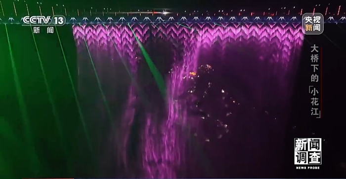 如今,这股水源已实现梯级利用:首要保障大桥服务区日常用水与周边农田灌溉,富余的水则成了世界最高水幕灯光秀的核心“原料”。