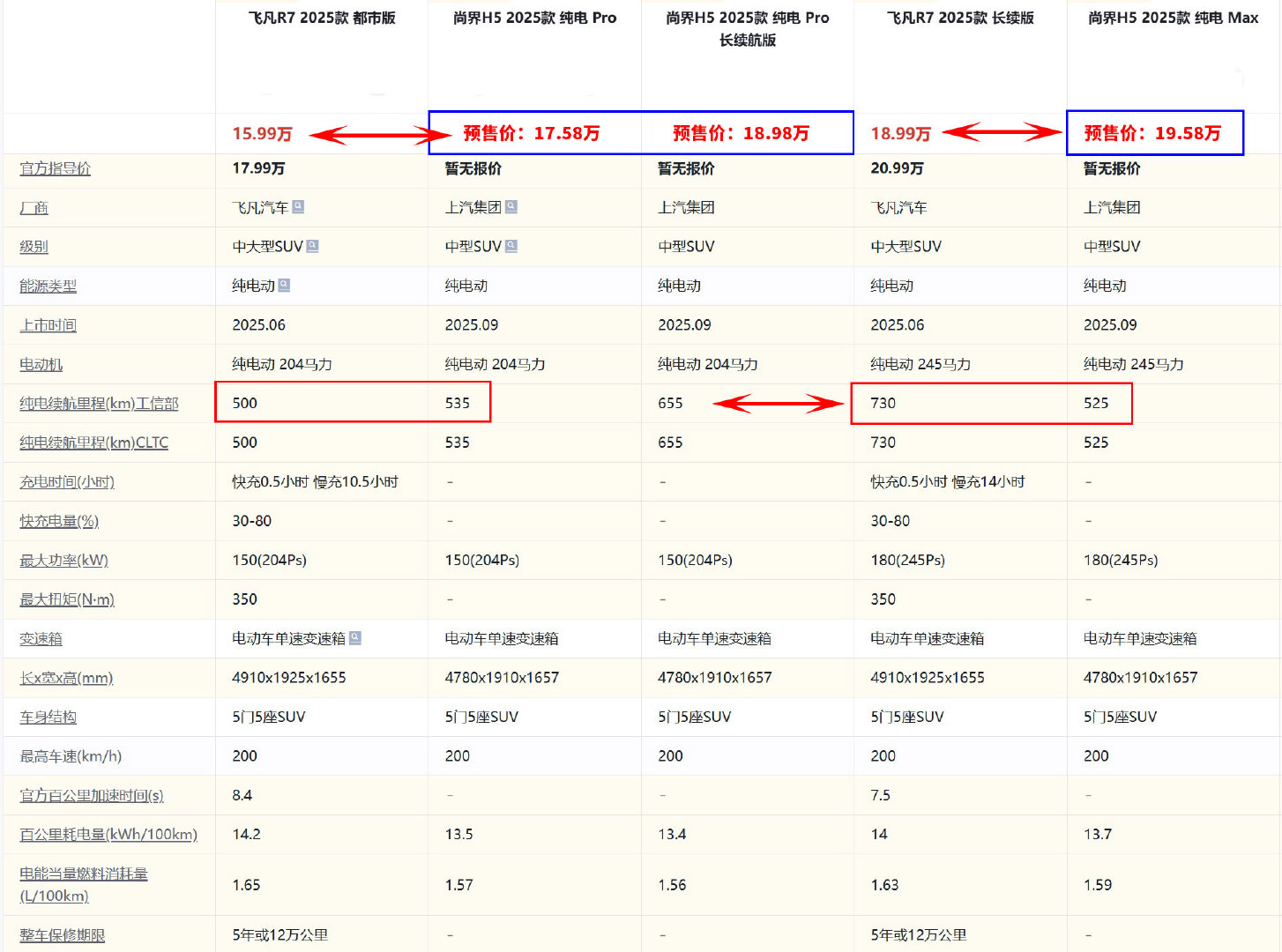 【写在前面:没想到持有十大几万预算的汽车消费者也有这么多不理性的,他们宁愿花19.58万元购买续航525km的尚界H5(配置|询价)纯电Max,也不愿意试试续航730km,并且店端售价已经落到18.99万元的飞凡2025款长续版,都是上汽出品,动力电池都跟宁德时代有关系,驱动电机输出功率基本一样,而且飞凡R7(配置|询价)空间还更有优势,您说说这到底是为什么……】