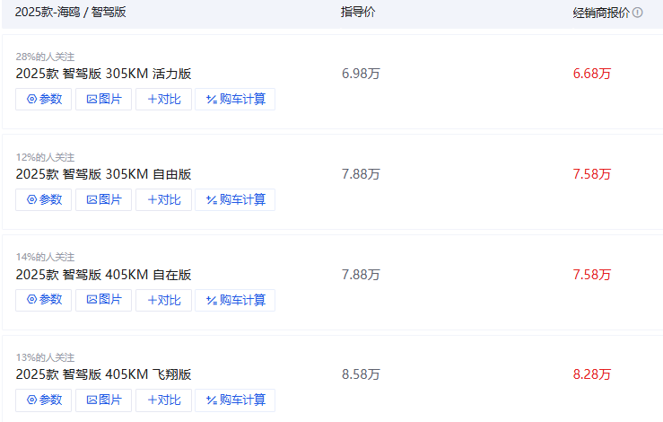 众所知,海鸥可是几万块钱的买菜车啊!一年前比亚迪搞天神之眼智驾普及,我当时就觉得动作挺大,没想到今年这把火直接烧到了最入门的A00级市场。