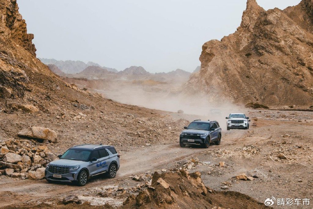 一路上,福探长们驾驶着探险者穿越了诸多极限路况:4.5亿年前奥陶纪地质运动造就了如今的柯坪大湾沟“刀片路”,岩壁锋利,路面倾斜,碎屑遍布,得益于纵置后驱平台与纯机械托森差速器,牵引力始终强劲。拐进图昆公路,风沙漫天,四驱系统几乎瞬间感知路况变化,扭矩被无声地分配到最需要它的车轮上,让车子平稳前行。