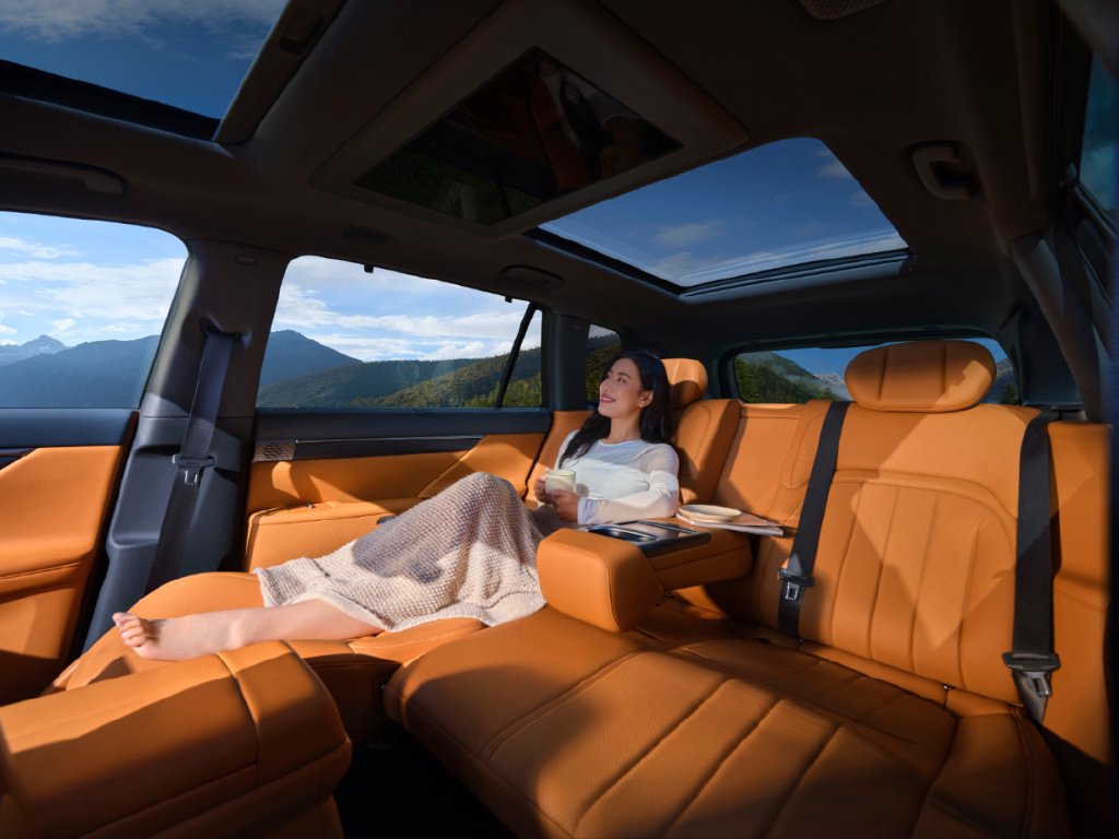 它主打大五座、家庭舒适,是理想L6的价格破局者,腾势N7的错位对手。重点在于,它不是去抢别人饭碗,而是用同级唯一“魔毯座椅+贵妃榻+L型联动”的设计去打破五座SUV“有空间无舒适”的刻板印象。