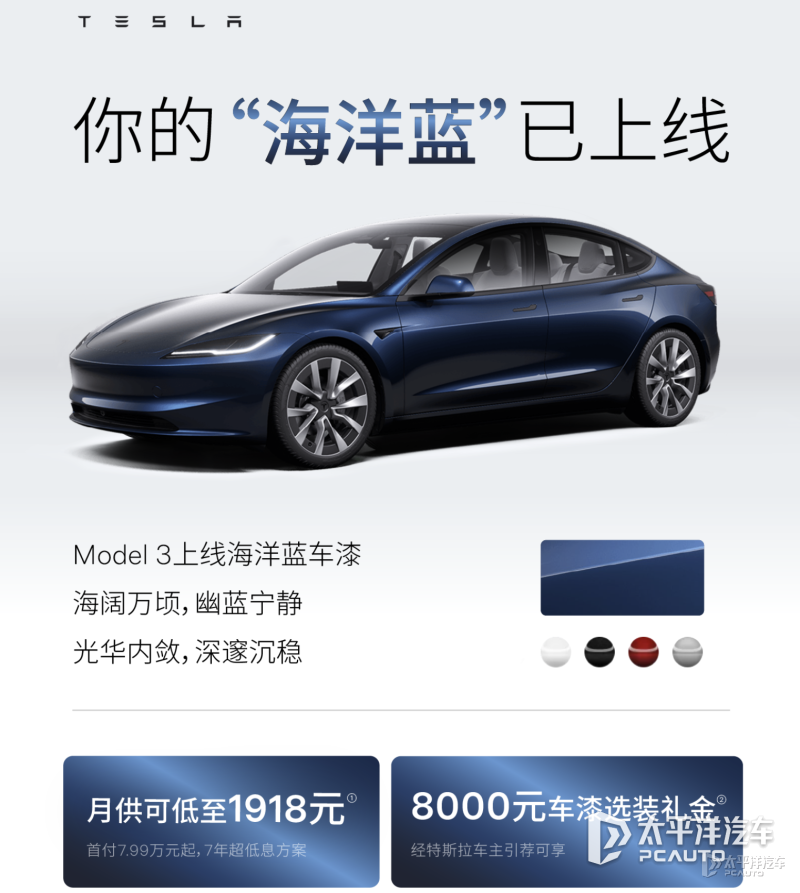 【太平洋汽车 新车频道】 1月6日,从特斯拉官方获悉,特斯拉针对旗下Model 3(配置|询价)、Model Y(配置|询价)、Model Y 三款车型推出7年低息购车方案,其中Model 3/Y首付7.99万起,月供低至分别为1918元和2263元;Model Y L(配置|询价)首付9.99万起,月供可低至2947元,不知道月薪3000-5000元的朋友们是否心动了?同时,特斯拉Model Y L首次推出5年0息购车方案,首付9.99万元,月供低至3985元。