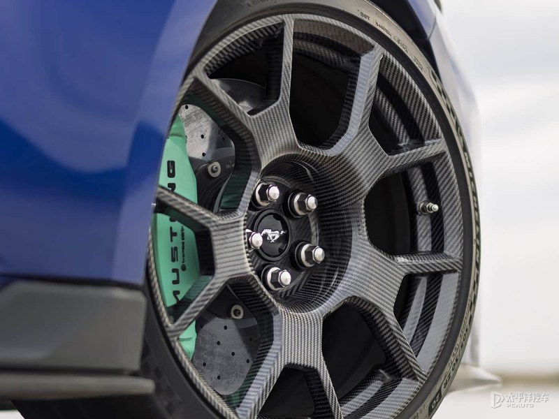 轮胎方面,福特与米其林合作开发了定制版Pilot Sport Cup 2 R轮胎,前轮尺寸为305/30R20,后轮为315/30R20,此配置借鉴了Mustang GTD技术,可提供超级跑车级别的轮胎抓地力。此外,新车还搭载碳纤维轮毂,进一步减重。