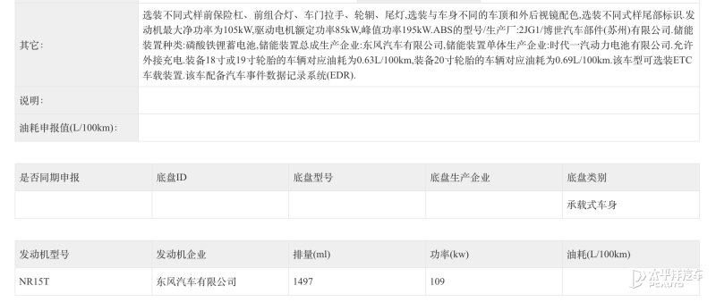 动力方面,东风日产NX8增程版搭载由NR15T增程器与驱动电机组成的插电混动系统,发动机最大净功率105kW,驱动电机峰值功率195kW;储能装置为磷酸铁锂蓄电池,支持外接充电;油耗表现上,装备18寸或19寸轮胎的车型油耗为0.63L/100km,20寸轮胎车型油耗为0.69L/100km。