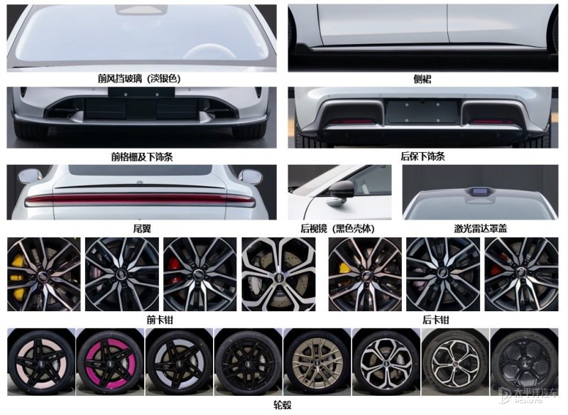 在轮毂方面,新车提供19英寸和20英寸共5款样式可选,且有多款配色可选,对应不同卡钳颜色,19英寸轮毂对应的轮胎规格为245/50R19;20英寸轮毂对应的轮胎规格为245/45 R20、275/40 R20,属于前窄后宽搭配。在配色方面,尚界Z7将会提供晚山新绿、琥珀金绿、黑色、白色、灰色、粉色、蓝色、紫色等共9种个性化车色选择。
