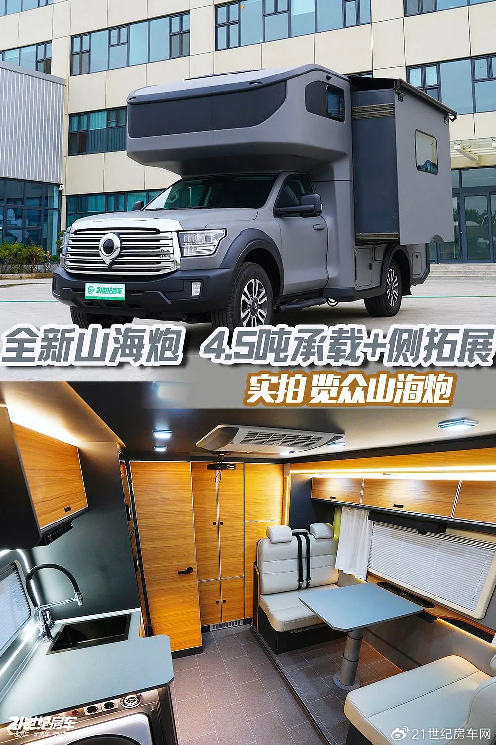 当强调越野性能的皮卡房车追求上装空间时,就会萌生将拓展机构运用到房车箱体上以增加内部空间的设计。最近览众房车推陈出新,为大家带来新款山海炮(配置|询价)侧拓展房车。它的底盘采用全新的N2类房车专用底盘,承载能力提升至4.5吨,远超同类带拓展皮卡房车的载重,这为更大尺寸、更丰富的拓展结构提供了坚实支撑 。