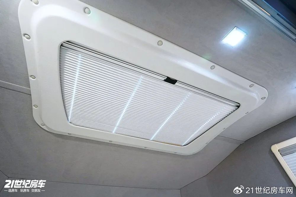 驾驶室与后方生活区中间设计有窗口,不仅便于前后交流互动,也可以隔绝冷热空气和噪音对生活区的影响。