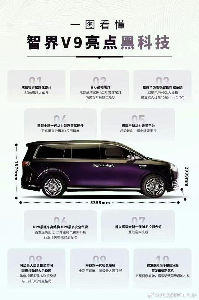 MPV市场,最近可能要迎来一个不太一样的玩家了。最近,鸿蒙智行旗下的首款MPV——智界V9,它的工信部“证件照”和信息都出来了。这一露面,可以说直接给原本就挺热闹的MPV赛道,又添了把火。