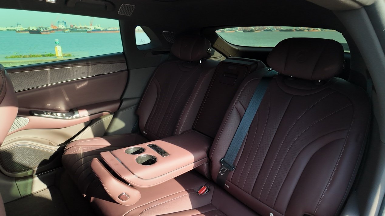 整个座舱我个人最满意的其实不是上述的种种配置,而是前后排座椅尽可能的给到了相同的待遇,我愿称之为“座椅平权”!不论是前排还是后排的座椅,都有着很不错的承托力。副驾是零重力浮感座椅,舒适感自然不用多说,而我拿到的Ultra版试驾车,主驾同样标配了腿托,在舒享配置上不输副驾。