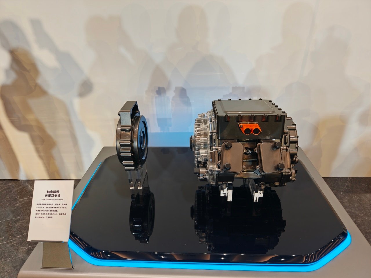 同时星途还展示了智驱轴向磁通增程器,也就是把磁通电机和增程器做了合体设计,采用发电机与逆变器共壳体、发电机与发动机共壳体、共轴承设计,通过油冷技术提升功率密度并降低成本。而且增程器轴向尺寸降低38%、发电机重量降低37%,布局更加紧凑。