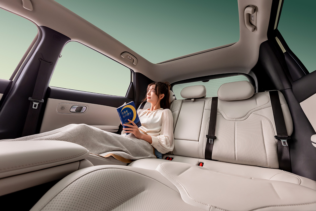然后是“舒适配置的越级”。Q05的环抱式舒享座舱,采用同级唯一的“臀线以上全软包”设计,不管是方向盘、门板还是中控台,摸上去都是柔软的质感,给人一种豪华车的温馨感。主副驾配备的SPA级座椅,更是把“舒适”做到了极致,不仅支撑性好,还自带通风、加热、按摩功能。副驾更是配备了同级独有的165度放倒功能和38cm×21cm的超大电动腿托,随时随地都能变身“移动午休床”。