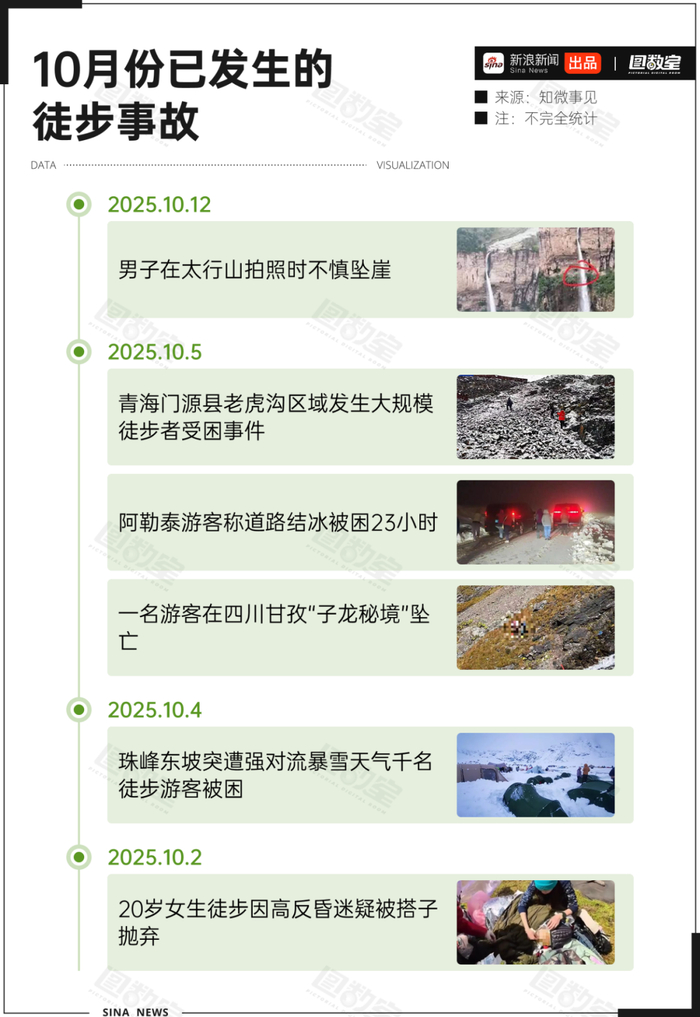 10月13日,一男驴友在位于河南新乡辉县的南太行老龙口瀑布下方拍照时不慎坠崖,后经确认已身亡。这并不是近期唯一的徒步事故,10月刚刚过半,发生的徒步事故已经达到6起。