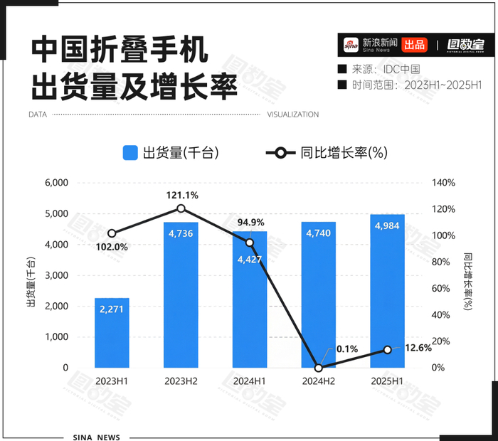 2023年上半年,中国折叠屏手机出货量还只有227万台,一年后,2024年上半年出货量已翻倍至442万台。到2025年上半年,这个数字逼近500万台,同比增长12.6%。