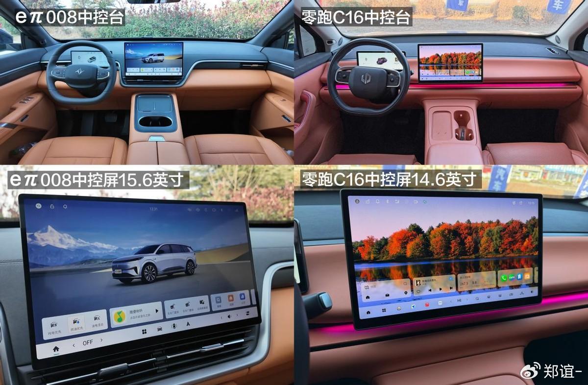 我们本次体验的车型分别是:零跑 C16 增程(配置|询价)六座 280 激光雷达版(厂商指导价 16.18 万元)。eπ008 六座增程家享版(厂商指导价 19.86 万元)。尽管两款车在经销商处均有一定优惠,但优惠后 eπ008 的价格仍高于零跑 C16,所以价差背后的产品力差距有多大呢?我们一起看。