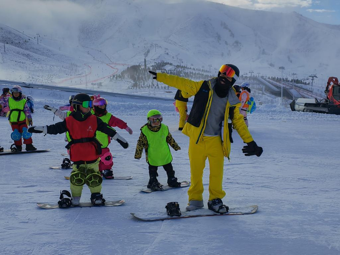 在新疆阿勒泰市将军山国际滑雪度假区,一名滑雪教练正在带领孩子们体验单板滑雪技巧。 新华社记者 孙哲 摄在乌鲁木齐市丝绸之路国际滑雪度假区,也是一片欢乐。11月29日,第二十三届乌鲁木齐丝绸之路冰雪风情节开幕,联动“雪假”,推出多项惠民措施,乌鲁木齐县周边多个滑雪场及多家景区对中小学生免票。