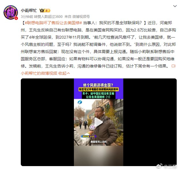 #联想电脑坏了售后让去美国修# 开始,我觉得这事儿很离谱,但是仔细看了,这个是因为没有他的零件目前,至少目前我从视频里看的,官方说的是:在调配件,在协商在协调。至少在视频里没有看到用户说的让他“去美国维修”,我觉得,如果客户有这样的实锤,拿出来,我绝对跟着骂维修。就跟大家念叨念叨关于延保这个事儿,我以前上班的时候,跟过一个项目就是汽车延保的,其实大家买车,现在好多人都选国产车,但是你要买进口车,尤其是纯进口车,不管是美规的还是啥的,这些车虽然和国内的一些型号名字是一样的,但是很多零件是不通用的,还有一些零件国内压根儿就没有,尤其是髮国车,特别爱这么搞,比如大概20年前,我有个女朋友家买了辆雷诺梅甘娜,有一次她妈开车把保险杠撞了,跟修理厂里放了溜溜3个月,因为国内没货,得从国外调,就只能等这么久。还有关于延保,延保的方式有好多种,你别光看写着延保就以为是都一样,比如我们搞汽车的延保,就相当于给它的车买了个保险,一但出问题,就去我们有签合作的修理厂或者其他的维修机构,有的延保,是品牌推出的,就可以到4s店进行维修,我觉得这种一般最靠谱,但往往价格更高。