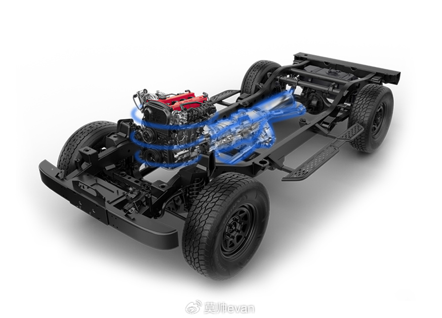 来到车身侧面,拥有较高的离地间隙,搭载AT胎。身材更魁梧。车身尺寸方面,新车的长宽高分别为4360/1890/1940毫米。新车拥有245毫米的离地间隙,最大涉水深度为600毫米。等速万向节、230毫米主减速盘齿、265毫米全地形轮胎、33毫米直径的刹车盘。