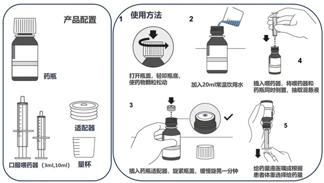 图 1:玛巴洛沙韦干混悬剂使用方法示意[9]