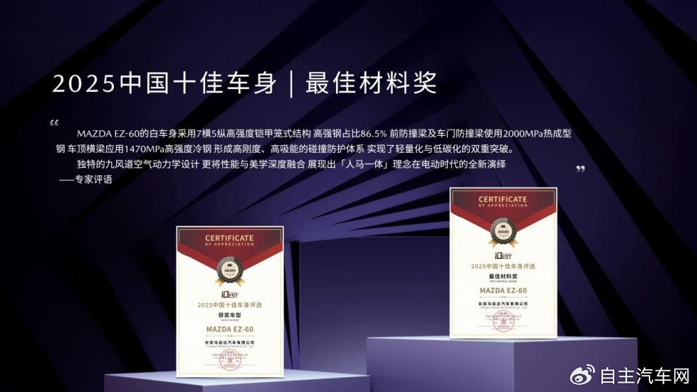 例如,马自达EZ-6(配置|询价)和EZ-60两款新能源车型,就在“TOP Safety”测试中表现出色,EZ-6在C-NCAP的评分中乘员保护得分率高达97%,创下该领域的新纪录。而EZ-60更是在极限碰撞测试中,以完美的车身结构和安全防护,在多重测试下毫发无损,成功为马自达赢得了全球消费者的信任与赞誉。