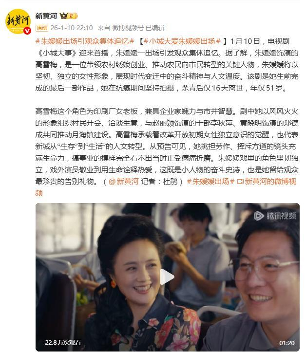 《小城大事》的播出,成了大众缅怀这位优秀演员的重要契机。业界评价她“用生命刻度丈量艺术高度”。据悉,该剧已被央视购片,并设立了“媛媛艺术传承基金”。这不仅是她献给时代最后的一曲赞歌,也让我们看到,一位真正的演员,是如何将个体的坚韧,最终淬炼成荧幕上永恒的人文温度。