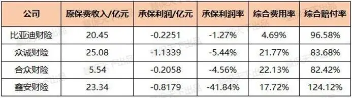 以4家主机厂背景险企为例,今年前三季度,赔付率均普遍高于行业,承保利润也多为亏损。