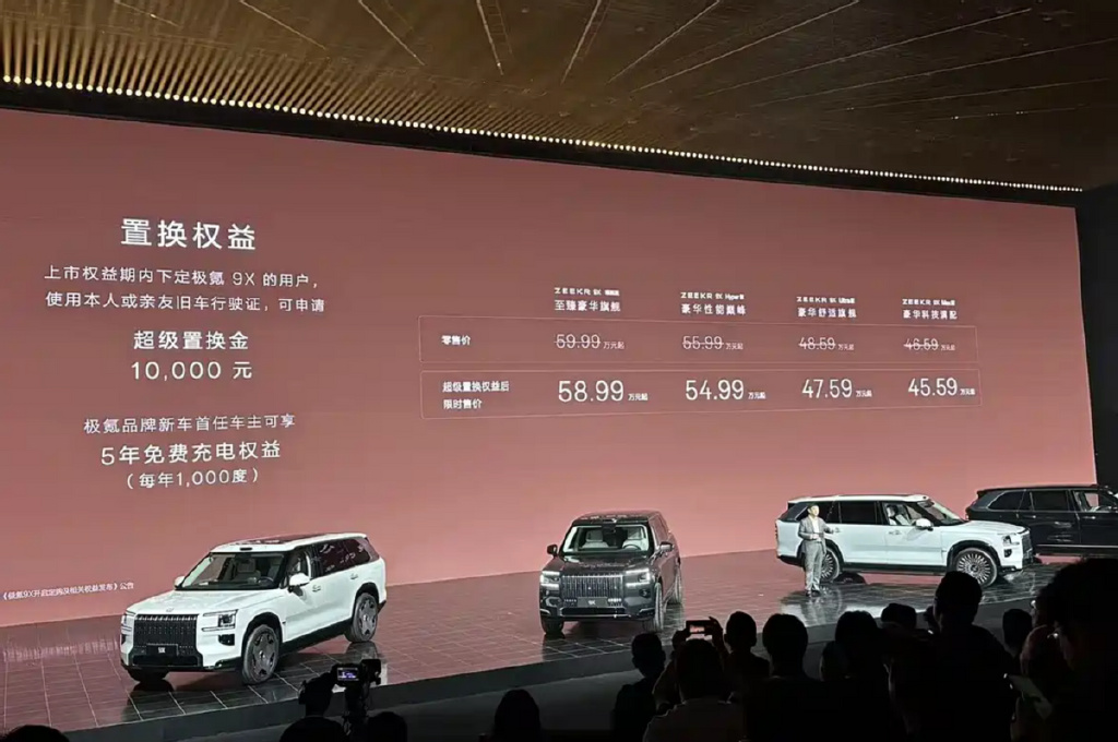 问界M9(配置|询价)是拥有增程式的大型SUV,起售价46.98万元,更是问界汽车销量支柱,现如今,全新极氪9X(配置|询价)上市了,共计4款配置,售价46.59-59.99万元,比预售更便宜,而且置换全系优惠1万块,那么问界M9就非常危险了。