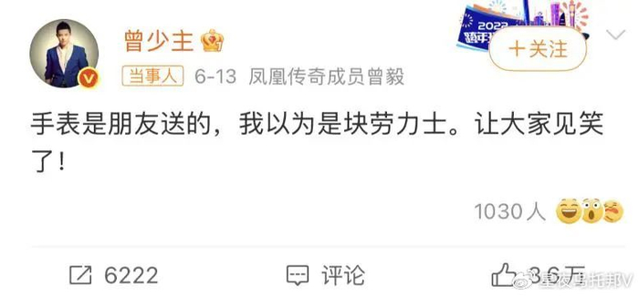 说自己的手表是朋友送的,以为是劳力士就戴了。